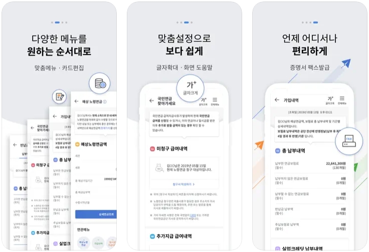 - 모바일에서도 간편하게 예상 연금액, 가입 내역, 연금 지급일 등을 확인할 수 있음