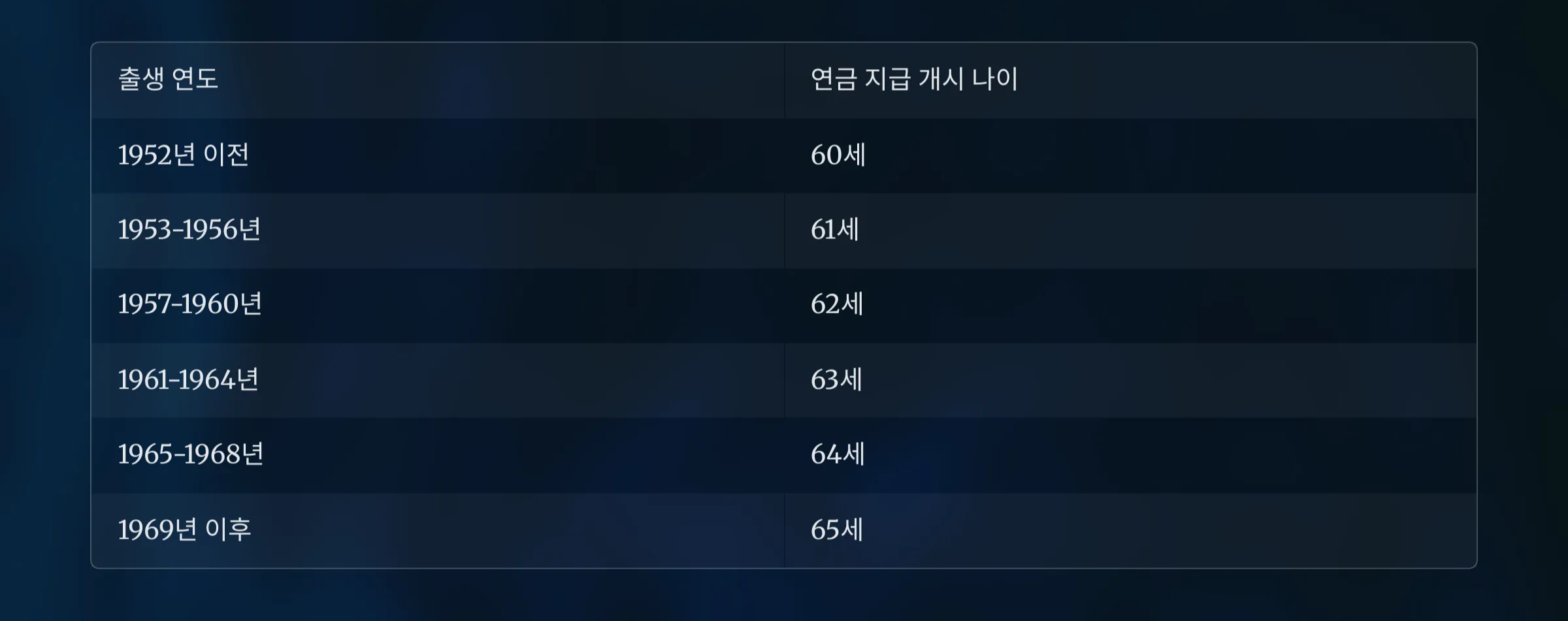 출생연도에 따라 국민연금 수령 개시 연령이 다릅니다.