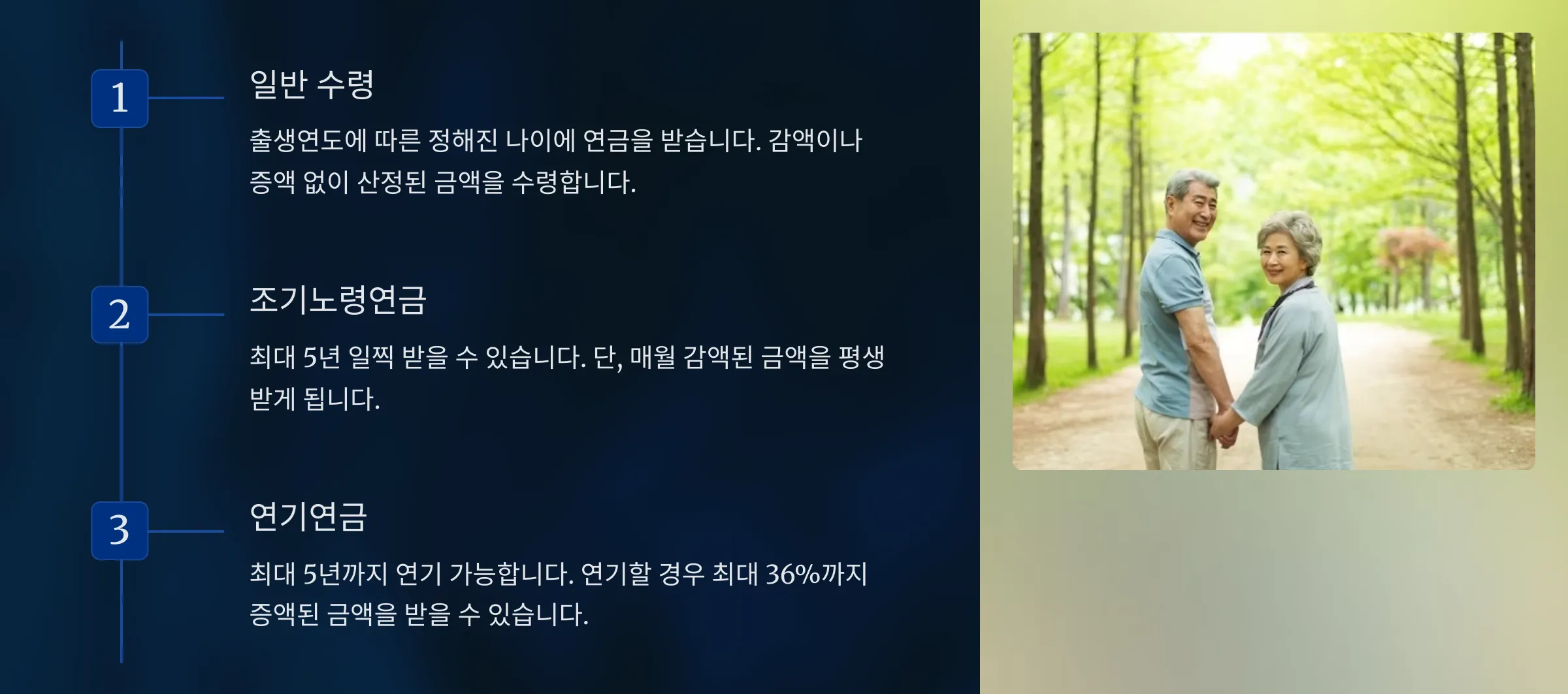 - 연기연금: 연금 수령을 최대 5년 연기하면 최대 36% 추가 지급